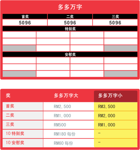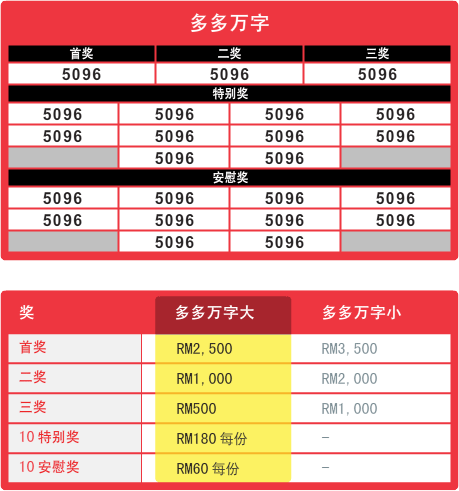 投注万字大以赢取首奖、二奖、三奖,特别奖或安慰奖。