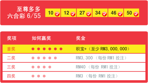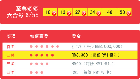 - 总赌注池指的是每一期所收集的赌注金额的55%,如果该期超过一位中奖者,积宝奖金将按照每位中奖者的投注金额平均分配。