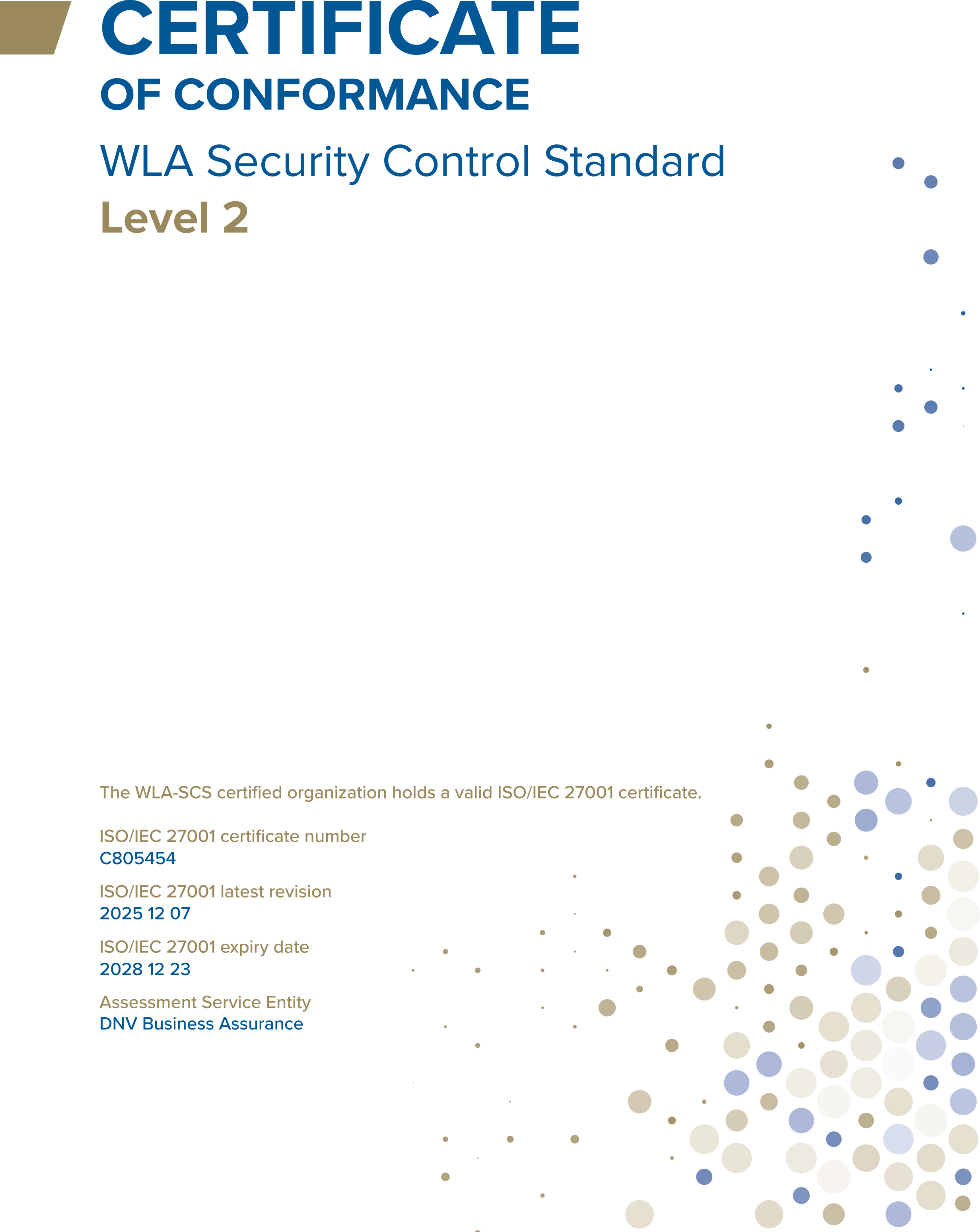 WLA-SCS:2024 & ISO/IEC 27001:2022